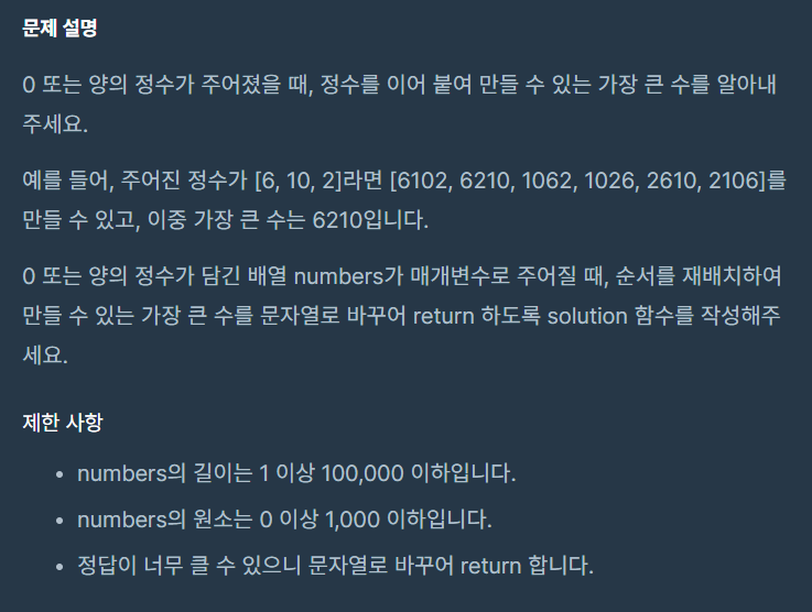 [프로그래머스] 가장 큰 수 정렬문제 python (200713)