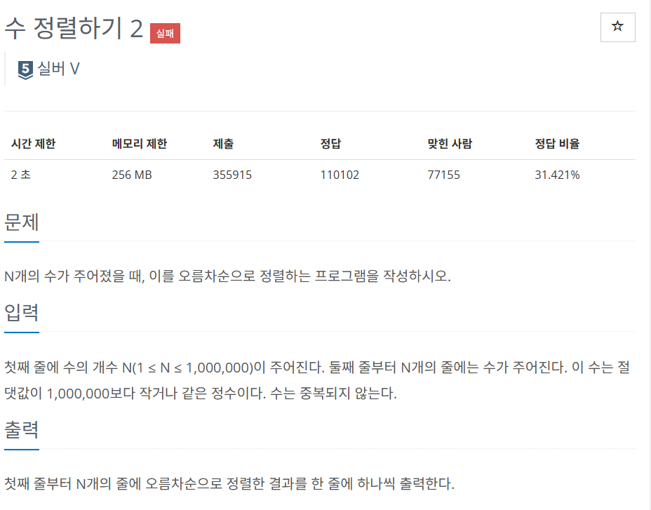 리스트로 입력값을 받아서 Collection.sort()를 사용할 경우 시간 초과 문제를 해결할 수 있다.